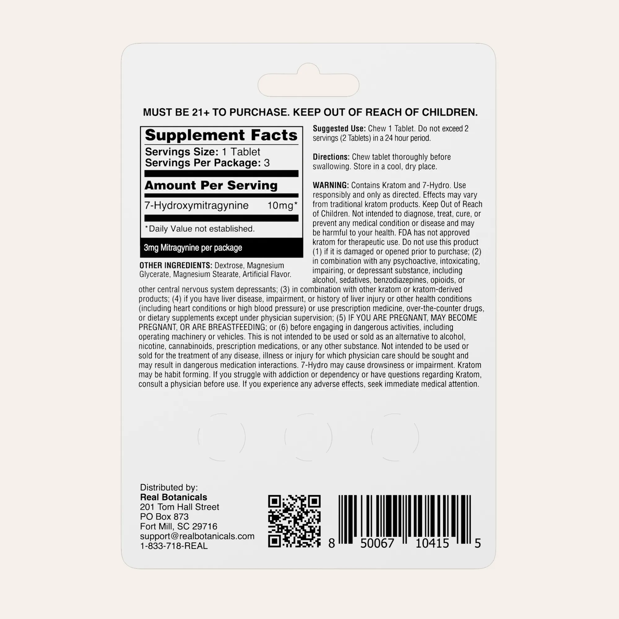 Powerful relief is yours with our 7-Hydroxymitragynine tablets from Real Botanicals. Experience fast-acting comfort and calm that lasts, thanks to our ChromaPure extraction of concentrated 7-Hydroxymitragynine, the powerful kratom alkaloid known for its therapeutic strength. Easy, chewable 7-Hydro tabs provide the all-natural elevation you need. 3rd Party lab-tested to guarantee product ingredients and potency.